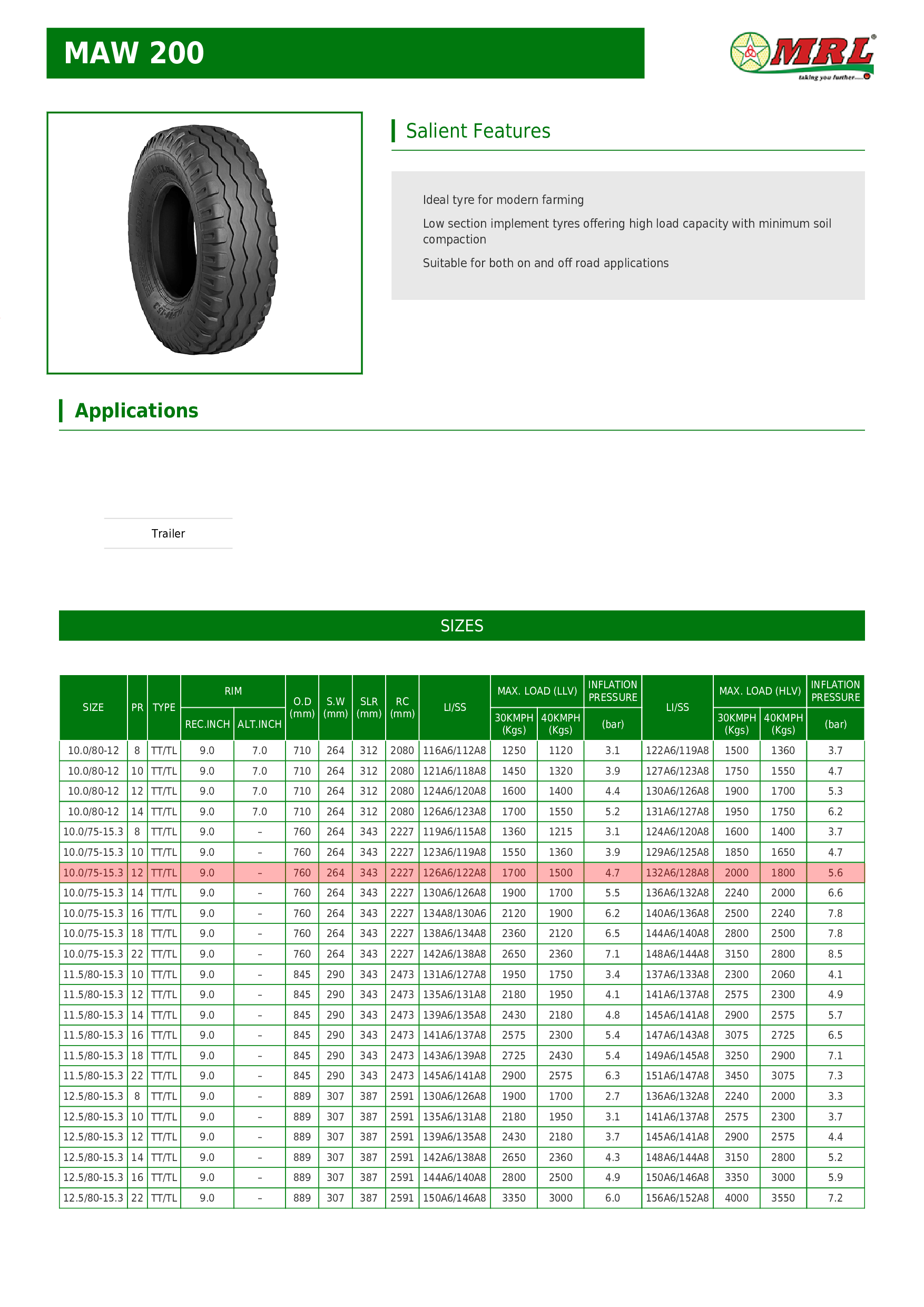 10.0/75-15.3 MRL MAW 200 126A6/122A8 12PR TL