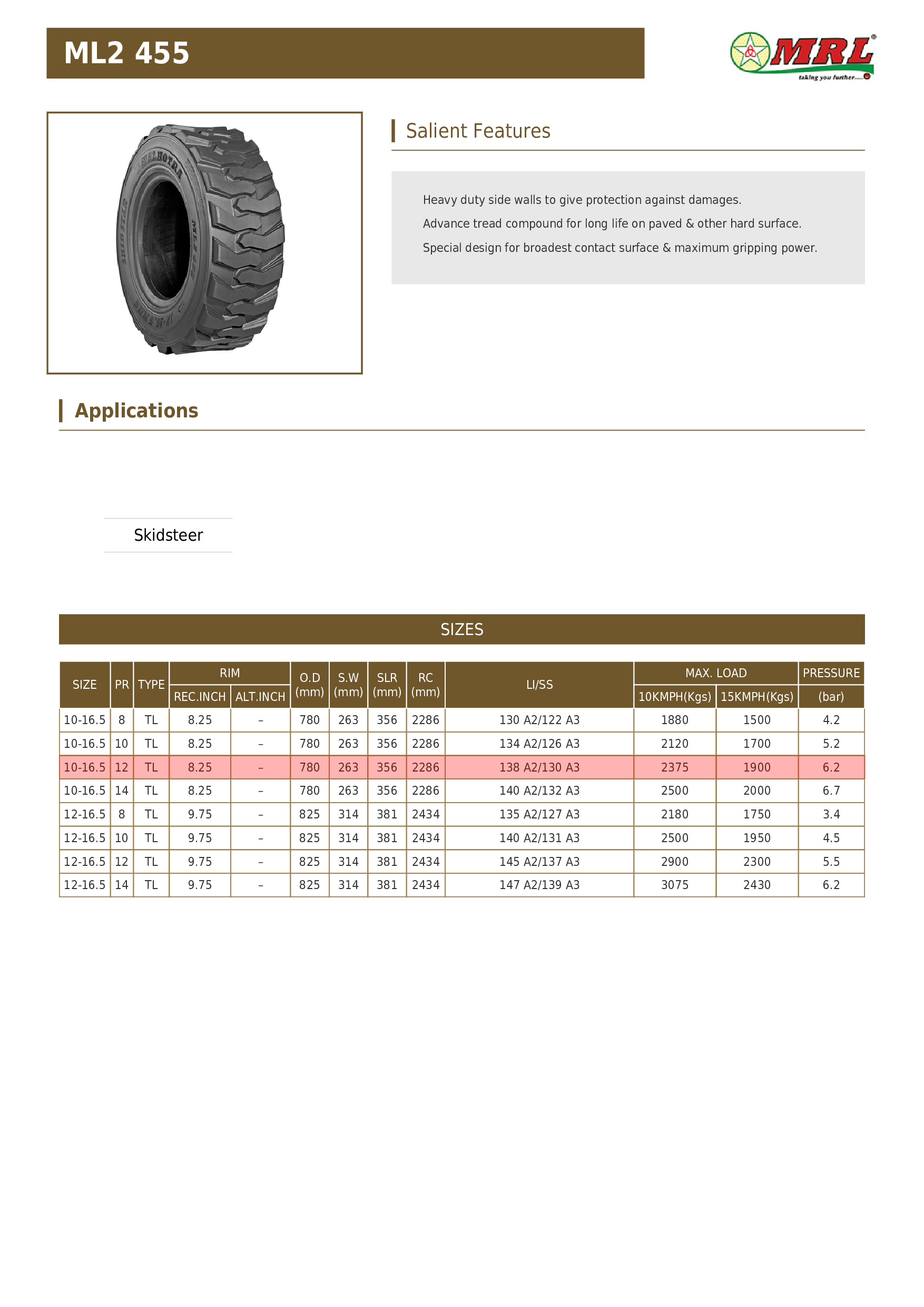 10-16.5 MRL ML2 455 12PR 138A2 TL