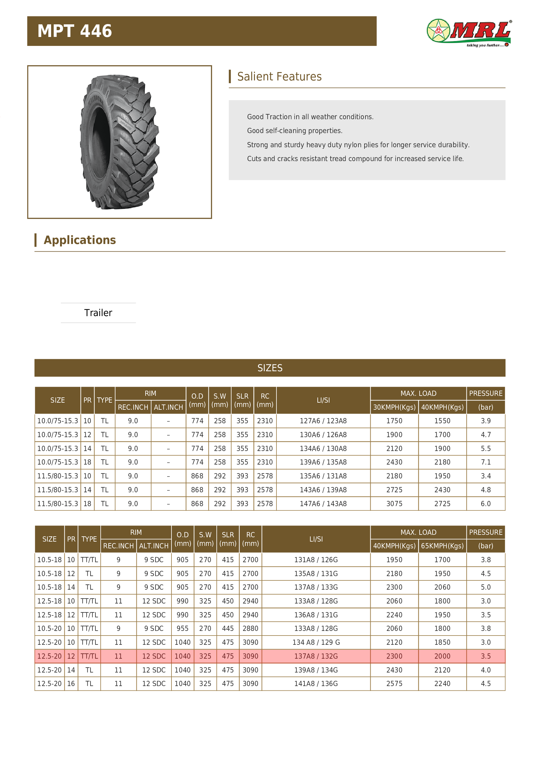 12.5-20 MRL MPT 446 137A8 12PR TL