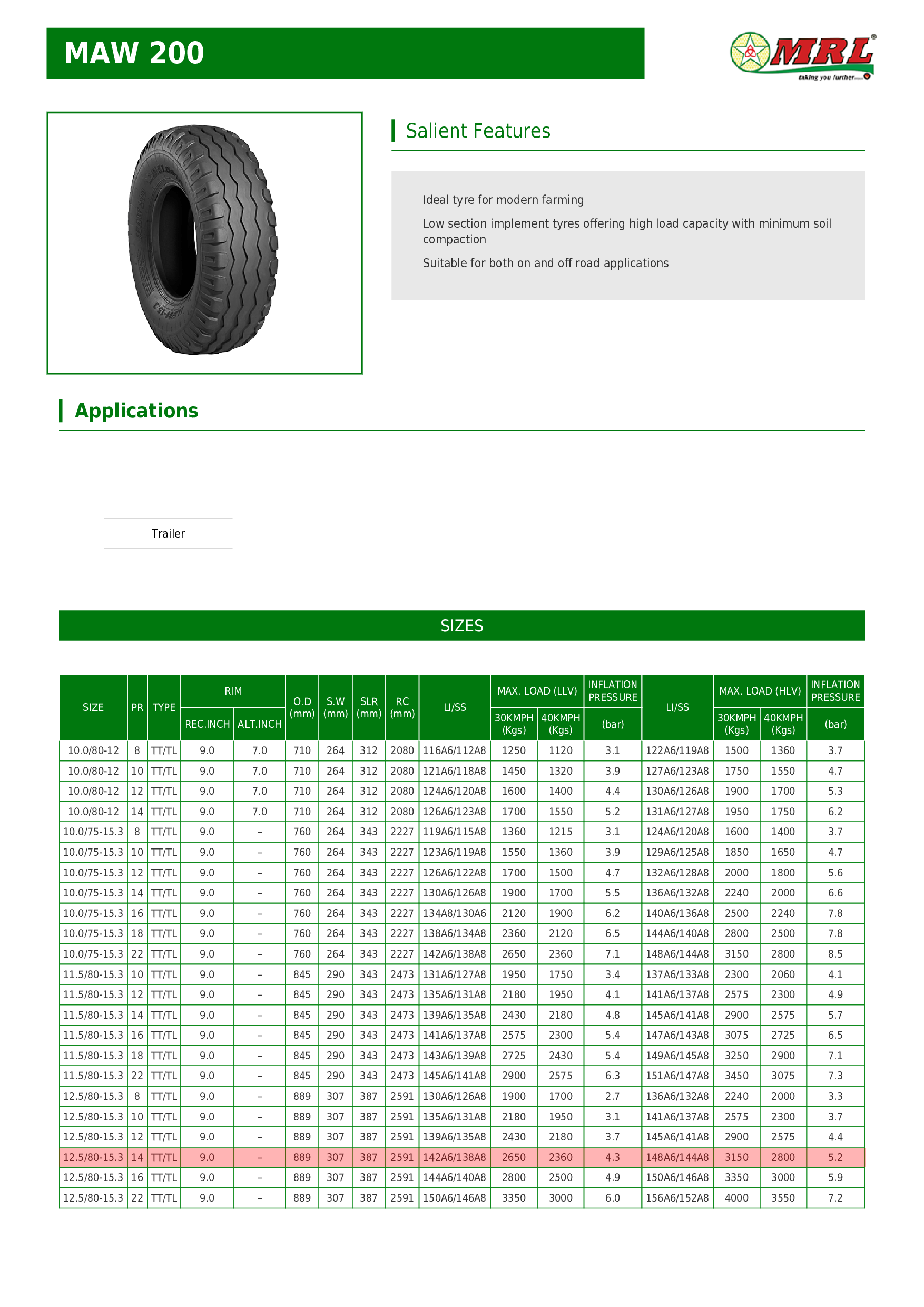 12.5/80-15.3 MRL MAW 200 14PR 142A6/138A8 TL