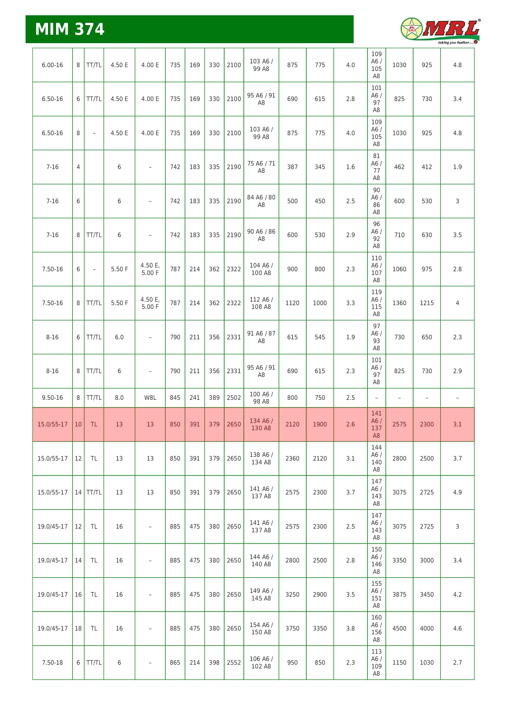 15.0/55-17 MRL MIM 374 10PR 134A6/130A8 TL