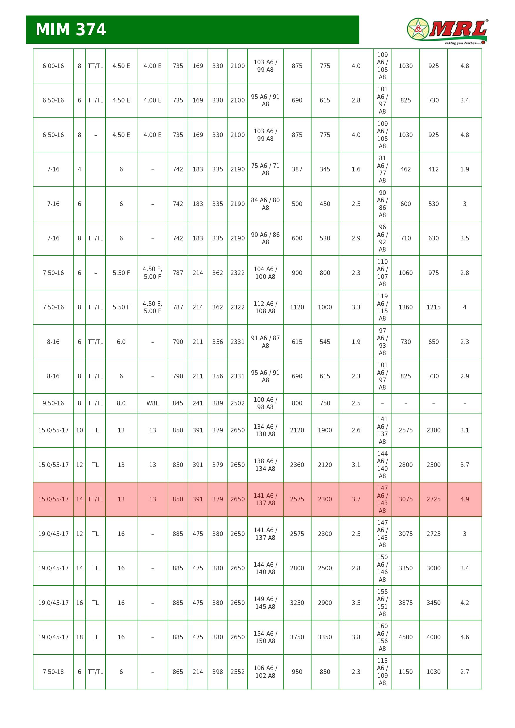 15.0/55-17 MRL MIM 374 14PR 141A6/137A8 TL