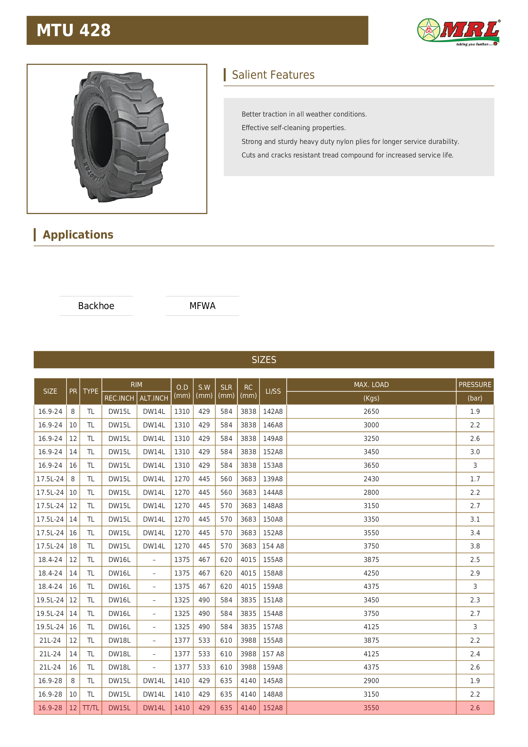 16.9-28 MRL MTU 428 12PR 152A8 TL