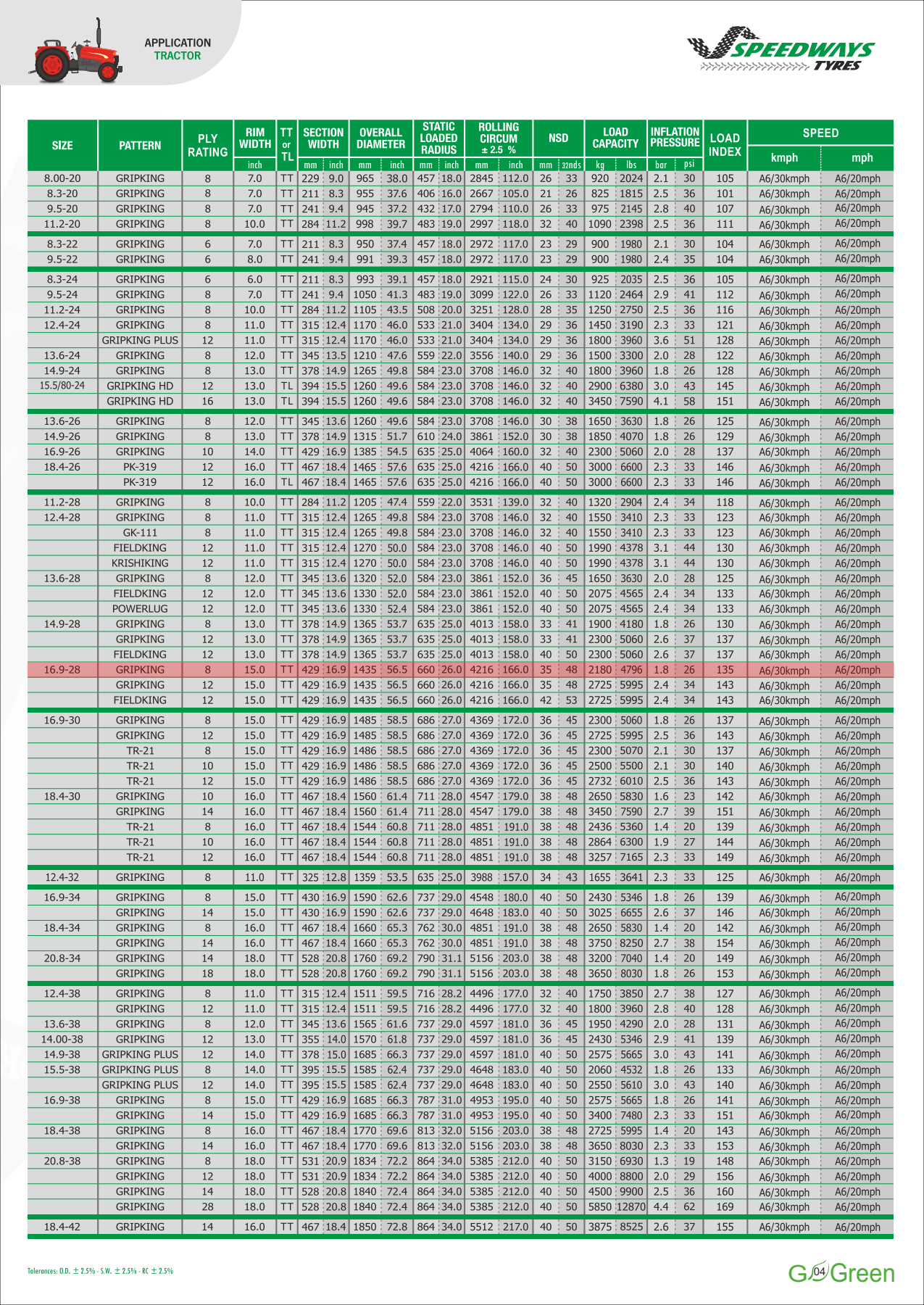 Speedways Gripking jest wytrzymałą oponą rolniczą sprawdzoną w polu przez naszych klientów. Jej głównymi cechami jest nowy, zapewniający maksymalną trakcję bieżnik. Dodatkowo dzięki wysokim klockom bieżnika i wolno ścierającej się mieszance opona ta sklasyfikowana jest jako bardzo żywotna, zapewniająca długą i bezproblemową pracę.