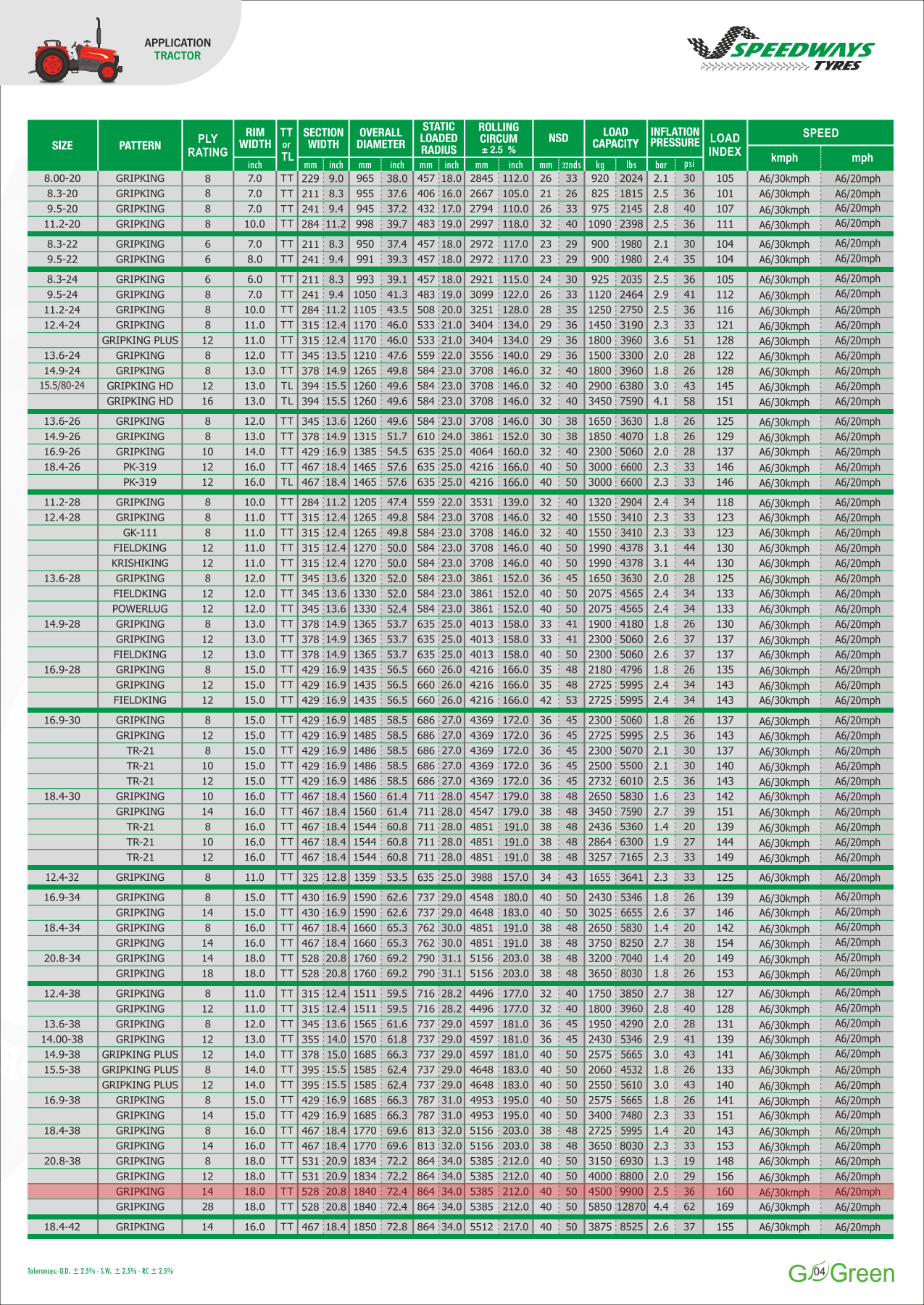 16.9-24 16.9-28 320/85R24 360/70R24 340/85R24 380/70R24 420/70R24 380/85R24 420/85R24 460/70R24 280/85R28 340/85R28 360/70R28 380/70R28 420/70R28 380/85R28 540/65R30 600/70R30 230/95R32 270/95R32 800/65R32 420/85R34 480/70R34 540/65R34 460/85R34 520/70R34 420/85R38 460/85R38 540/65R38 520/70R38 520/85R38 580/70R38 600/65R38 650/65R38 710/70R38