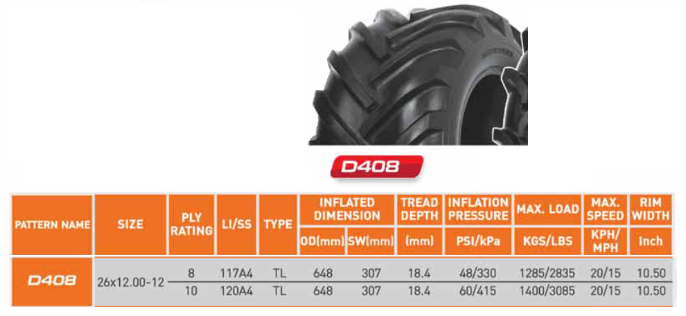 26X12.00-12 300/60-12 DEESTONE D408 10PR 120A8 TL