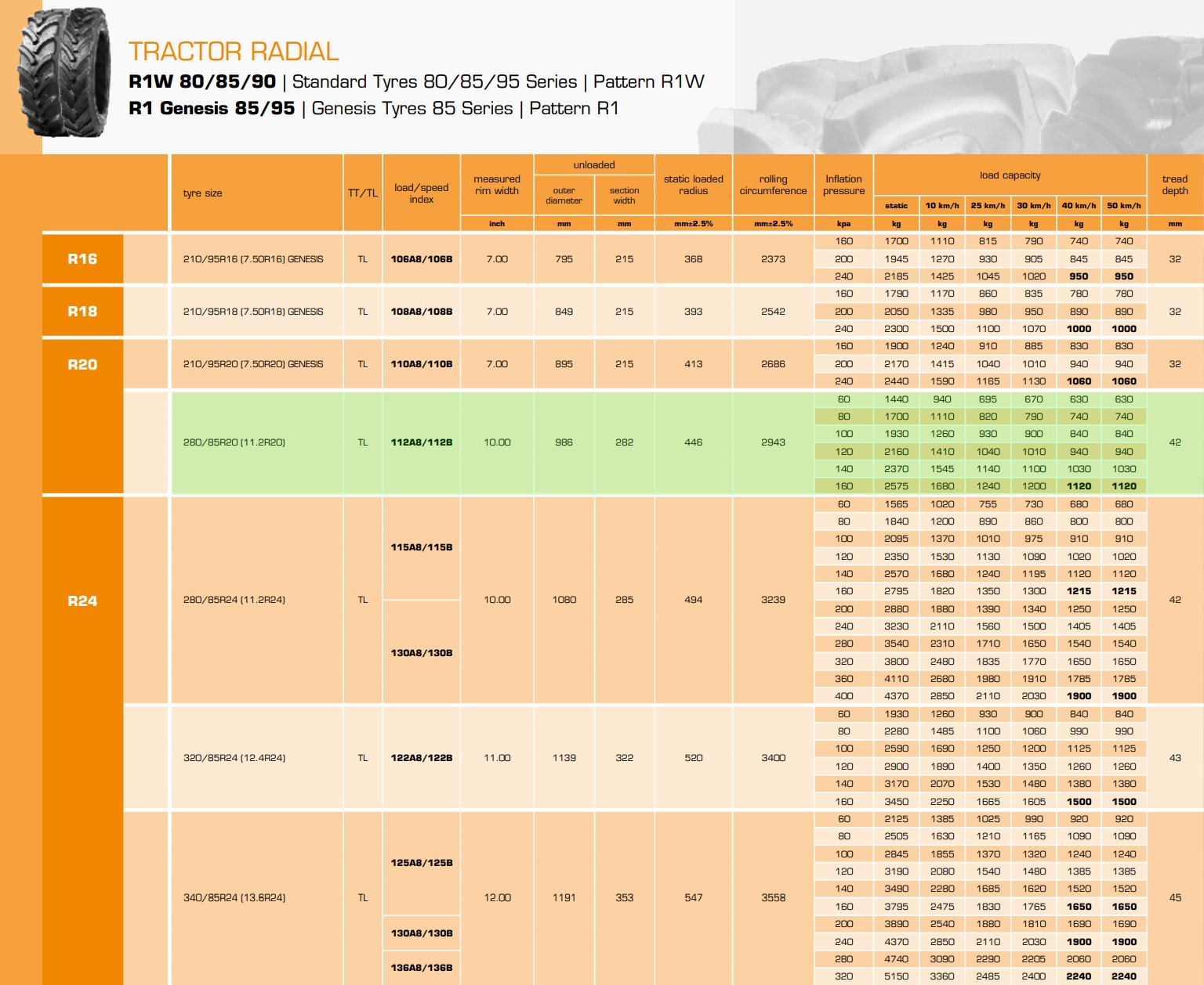 16.9-24 16.9-28 320/85R24 360/70R24 340/85R24 380/70R24 420/70R24 380/85R24 420/85R24 460/70R24 280/85R28 340/85R28 360/70R28 380/70R28 420/70R28 380/85R28 540/65R30 600/70R30 230/95R32 270/95R32 800/65R32 420/85R34 480/70R34 540/65R34 460/85R34 520/70R34 420/85R38 460/85R38 540/65R38 520/70R38 520/85R38 580/70R38 600/65R38 650/65R38 710/70R38