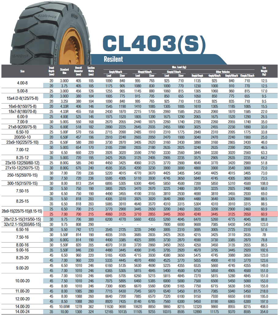 Westlake CL403S jest pełną, solidną i zaprojektowaną z myślą o najbardziej wymagających warunkach oponą wózkową. Trójwarstwowa budowa, wysoki bieżnik, bardzo wolno ścierająca się mieszanka gumy oraz 5-letnia gwarancja czynią z modelu CL403S jeden z najlepszych modeli wśród opon wózkowych.