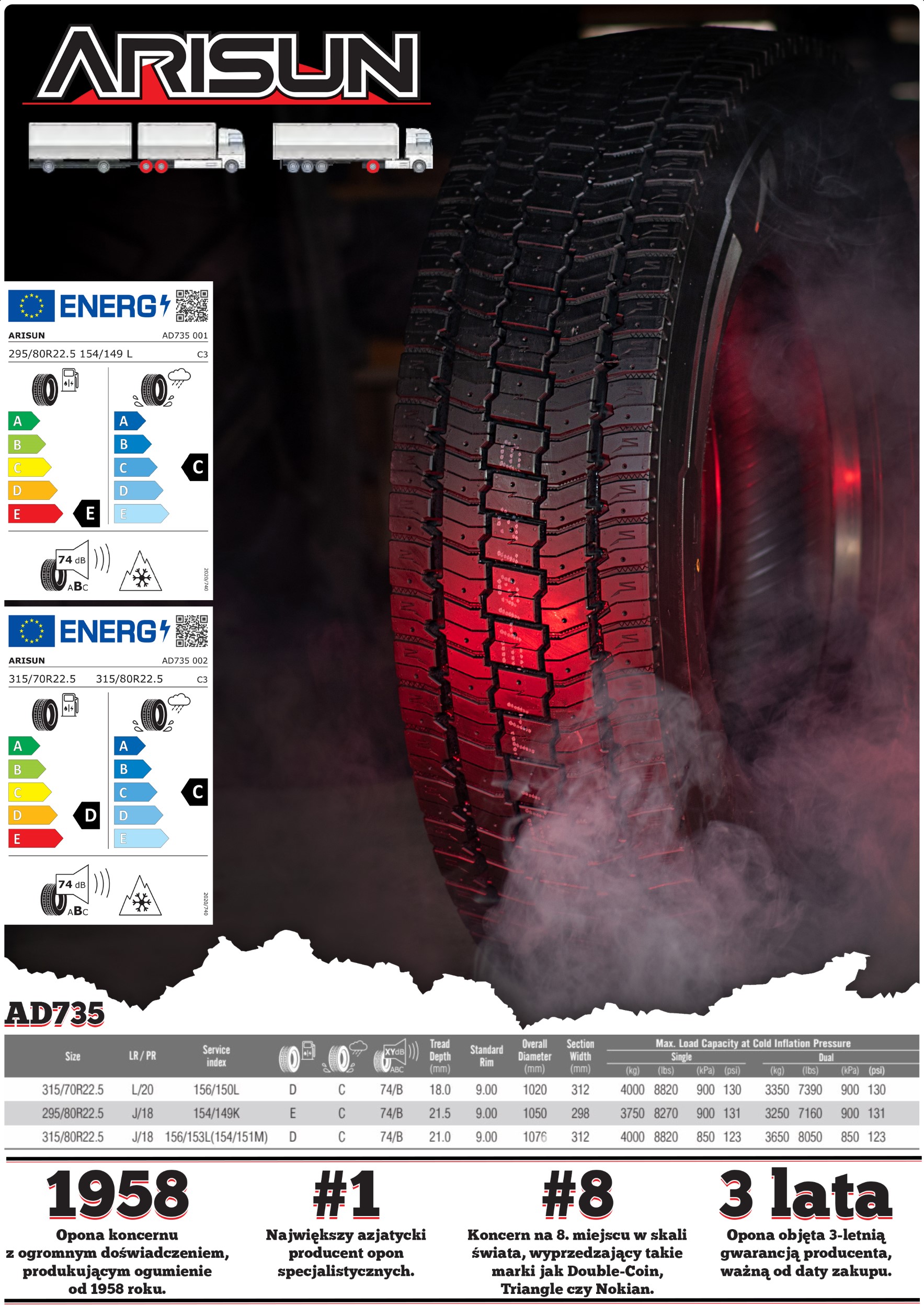 Gorąco zachęcamy do zapoznania się z naszą ofertą na opony ciężarowe marki Arisun!
