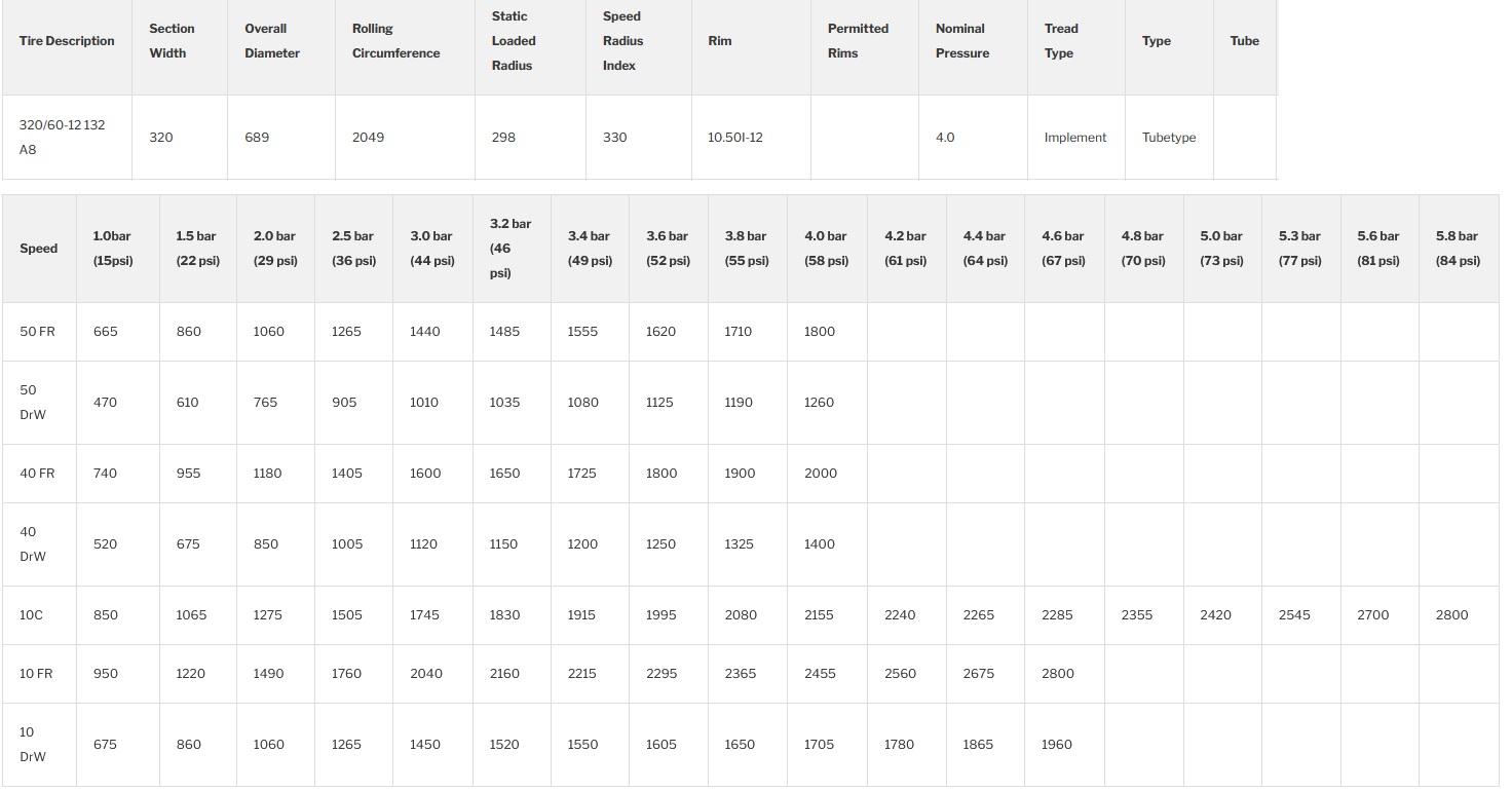16.9-24 16.9-28 320/85R24 360/70R24 340/85R24 380/70R24 420/70R24 380/85R24 420/85R24 460/70R24 280/85R28 340/85R28 360/70R28 380/70R28 420/70R28 380/85R28 540/65R30 600/70R30 230/95R32 270/95R32 800/65R32 420/85R34 480/70R34 540/65R34 460/85R34 520/70R34 420/85R38 460/85R38 540/65R38 520/70R38 520/85R38 580/70R38 600/65R38 650/65R38 710/70R38