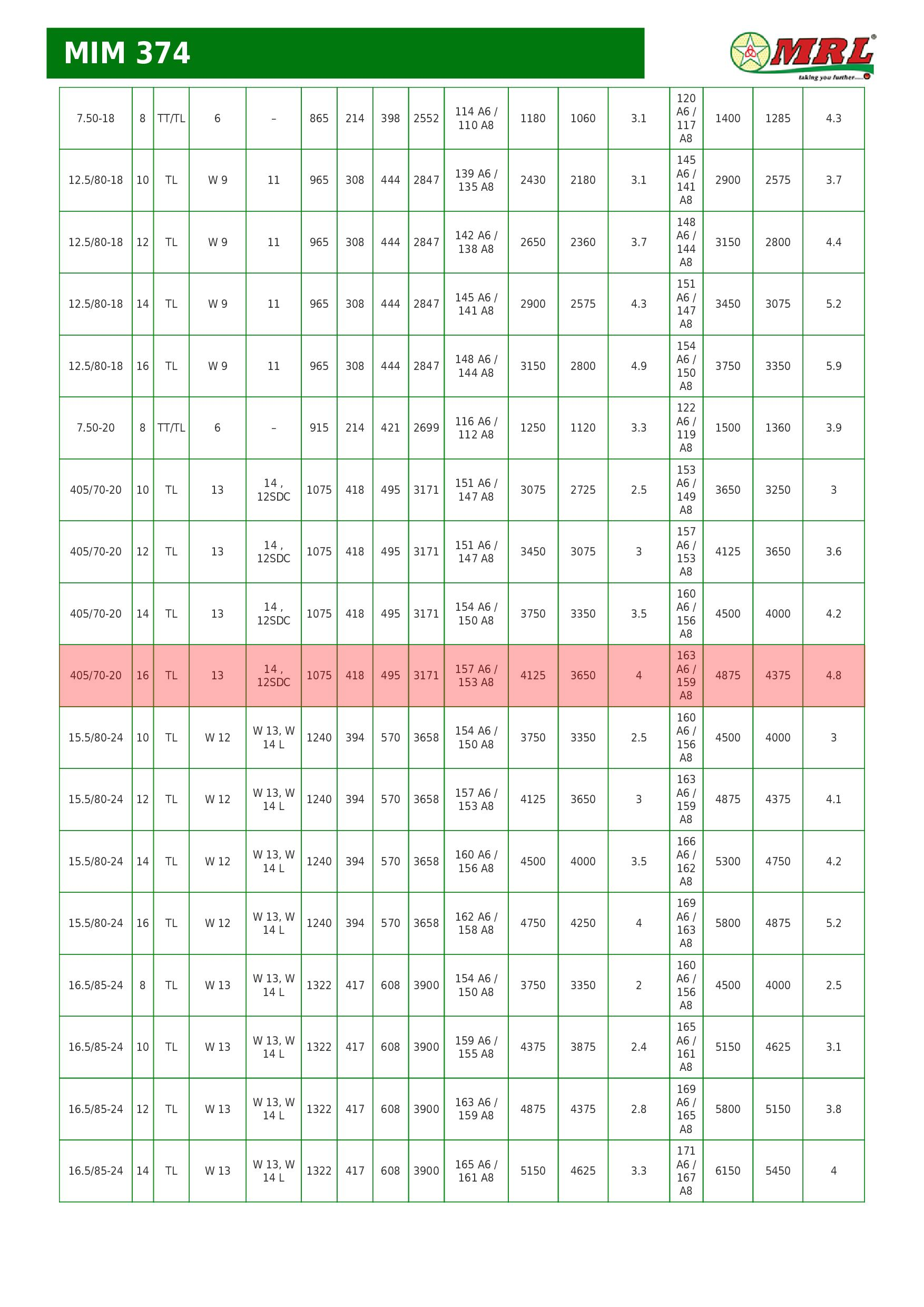 405/70-20 (16.0/70-20) MRL MIM 374 16PR 162A6/156A8 TL