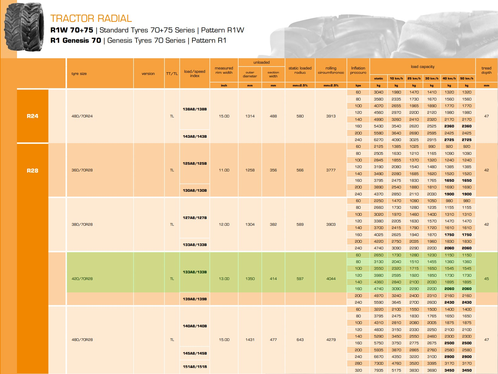 16.9-24 16.9-28 320/85R24 360/70R24 340/85R24 380/70R24 420/70R24 380/85R24 420/85R24 460/70R24 280/85R28 340/85R28 360/70R28 380/70R28 420/70R28 380/85R28 540/65R30 600/70R30 230/95R32 270/95R32 800/65R32 420/85R34 480/70R34 540/65R34 460/85R34 520/70R34 420/85R38 460/85R38 540/65R38 520/70R38 520/85R38 580/70R38 600/65R38 650/65R38 710/70R38