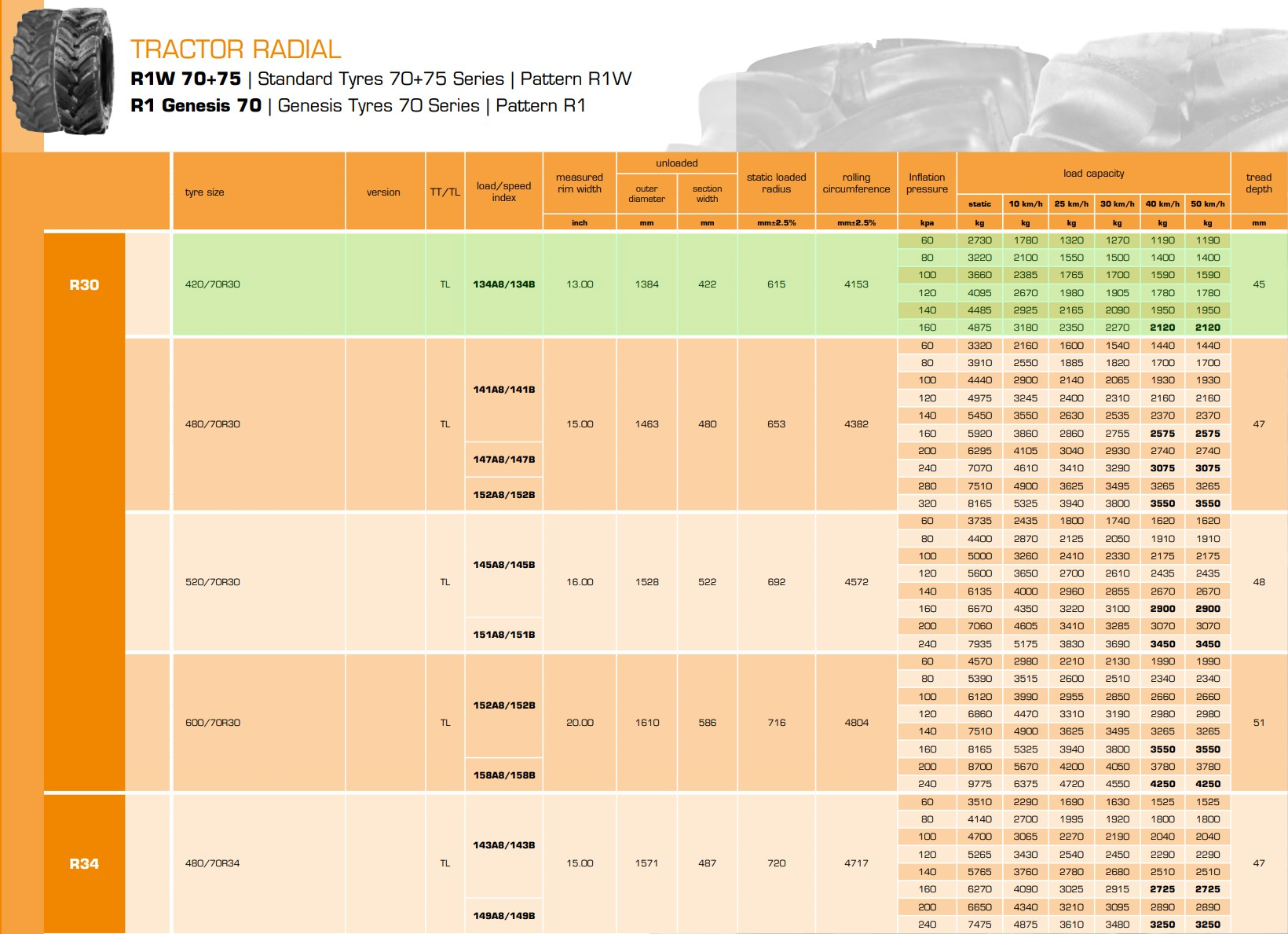 16.9-24 16.9-28 320/85R24 360/70R24 340/85R24 380/70R24 420/70R24 380/85R24 420/85R24 460/70R24 280/85R28 340/85R28 360/70R28 380/70R28 420/70R28 380/85R28 540/65R30 600/70R30 230/95R32 270/95R32 800/65R32 420/85R34 480/70R34 540/65R34 460/85R34 520/70R34 420/85R38 460/85R38 540/65R38 520/70R38 520/85R38 580/70R38 600/65R38 650/65R38 710/70R38