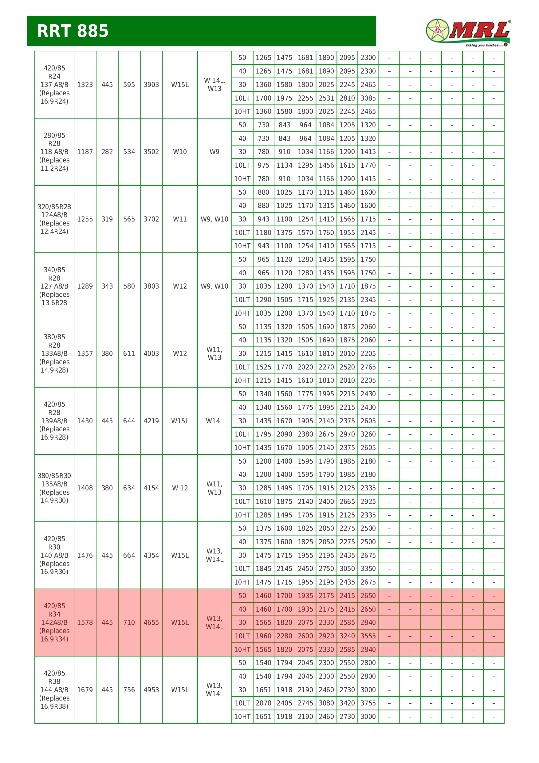 16.9-24 16.9-28 320/85R24 360/70R24 340/85R24 380/70R24 420/70R24 380/85R24 420/85R24 460/70R24 280/85R28 340/85R28 360/70R28 380/70R28 420/70R28 380/85R28 540/65R30 600/70R30 230/95R32 270/95R32 800/65R32 420/85R34 480/70R34 540/65R34 460/85R34 520/70R34 420/85R38 460/85R38 540/65R38 520/70R38 520/85R38 580/70R38 600/65R38 650/65R38 710/70R38