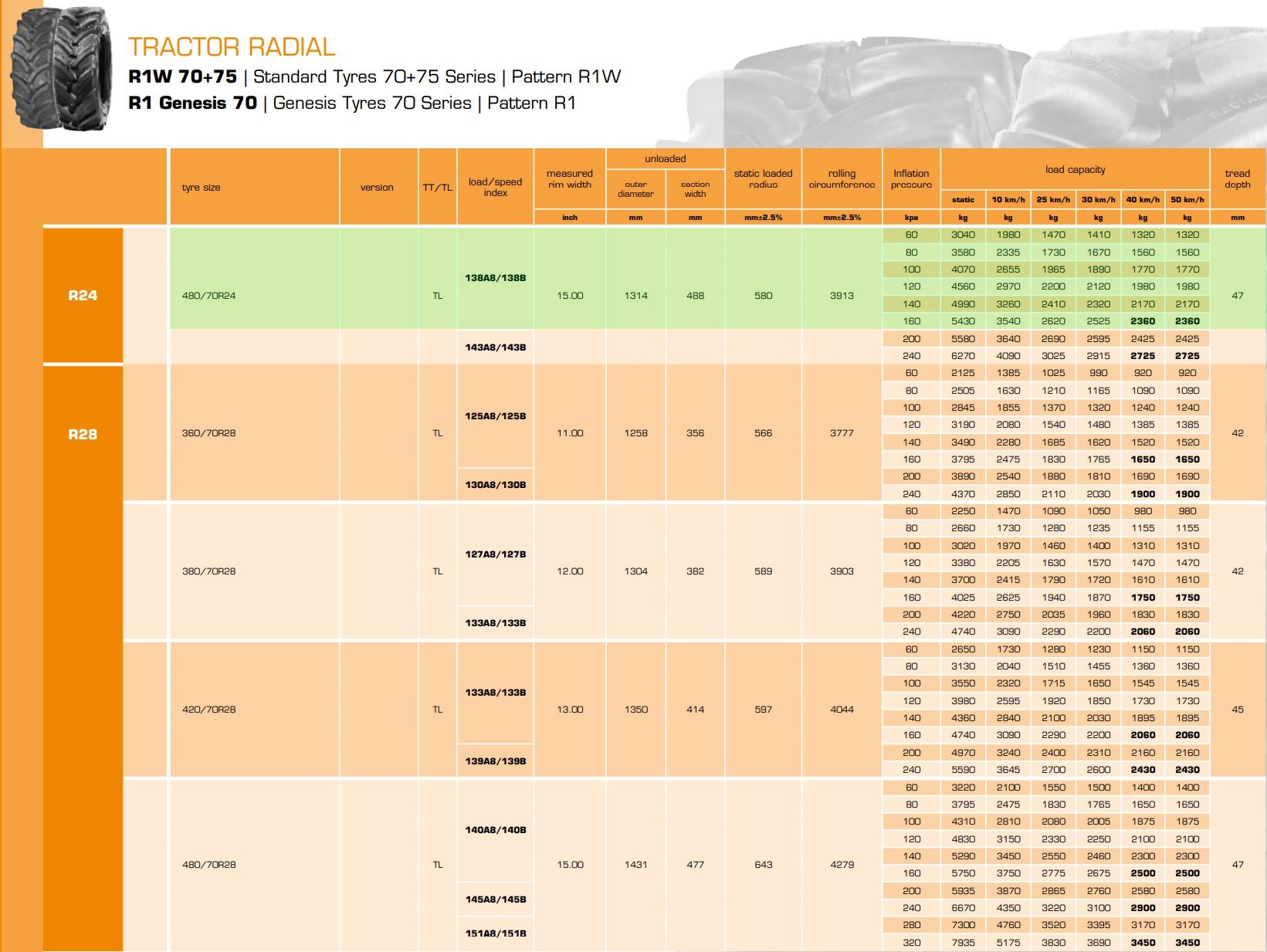 16.9-24 16.9-28 320/85R24 360/70R24 340/85R24 380/70R24 420/70R24 380/85R24 420/85R24 460/70R24 280/85R28 340/85R28 360/70R28 380/70R28 420/70R28 380/85R28 540/65R30 600/70R30 230/95R32 270/95R32 800/65R32 420/85R34 480/70R34 540/65R34 460/85R34 520/70R34 420/85R38 460/85R38 540/65R38 520/70R38 520/85R38 580/70R38 600/65R38 650/65R38 710/70R38