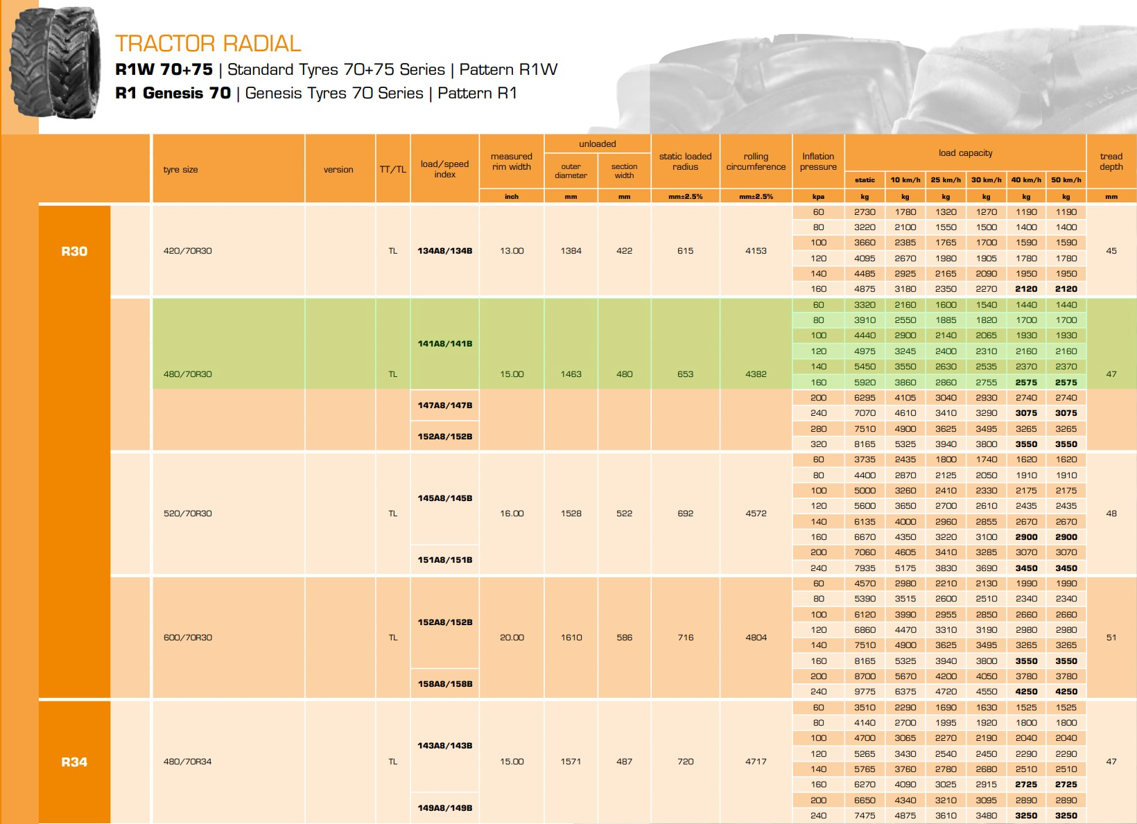16.9-24 16.9-28 320/85R24 360/70R24 340/85R24 380/70R24 420/70R24 380/85R24 420/85R24 460/70R24 280/85R28 340/85R28 360/70R28 380/70R28 420/70R28 380/85R28 540/65R30 600/70R30 230/95R32 270/95R32 800/65R32 420/85R34 480/70R34 540/65R34 460/85R34 520/70R34 420/85R38 460/85R38 540/65R38 520/70R38 520/85R38 580/70R38 600/65R38 650/65R38 710/70R38