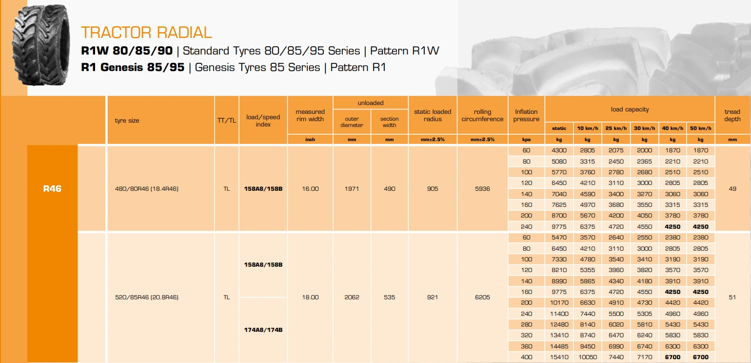 16.9-24 16.9-28 320/85R24 360/70R24 340/85R24 380/70R24 420/70R24 380/85R24 420/85R24 460/70R24 280/85R28 340/85R28 360/70R28 380/70R28 420/70R28 380/85R28 540/65R30 600/70R30 230/95R32 270/95R32 800/65R32 420/85R34 480/70R34 540/65R34 460/85R34 520/70R34 420/85R38 460/85R38 540/65R38 520/70R38 520/85R38 580/70R38 600/65R38 650/65R38 710/70R38