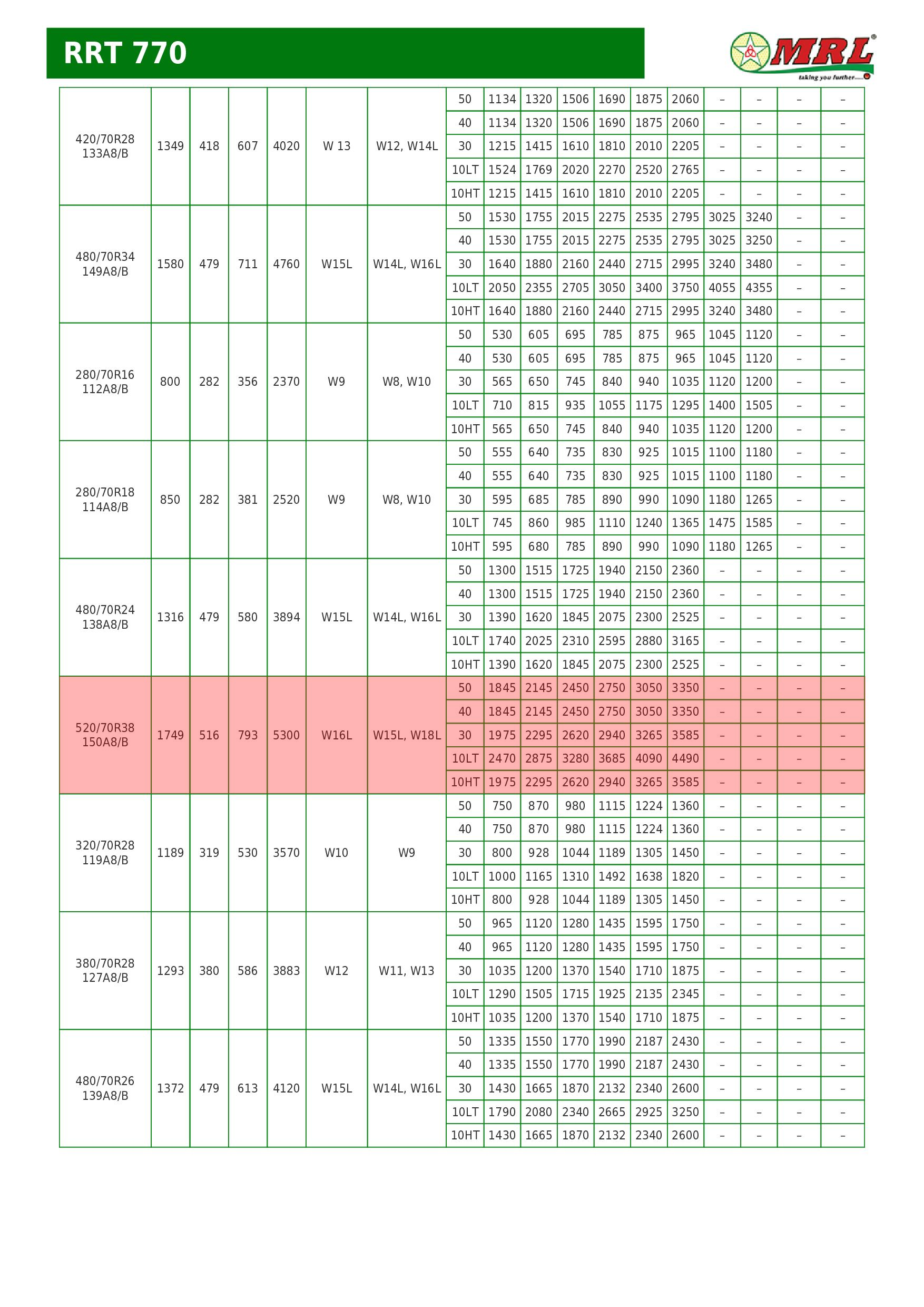 16.9-24 16.9-28 320/85R24 360/70R24 340/85R24 380/70R24 420/70R24 380/85R24 420/85R24 460/70R24 280/85R28 340/85R28 360/70R28 380/70R28 420/70R28 380/85R28 540/65R30 600/70R30 230/95R32 270/95R32 800/65R32 420/85R34 480/70R34 540/65R34 460/85R34 520/70R34 420/85R38 460/85R38 540/65R38 520/70R38 520/85R38 580/70R38 600/65R38 650/65R38 710/70R38