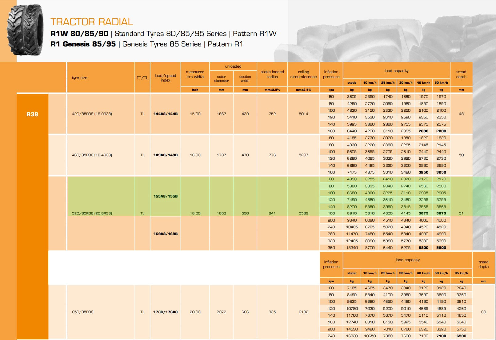 16.9-24 16.9-28 320/85R24 360/70R24 340/85R24 380/70R24 420/70R24 380/85R24 420/85R24 460/70R24 280/85R28 340/85R28 360/70R28 380/70R28 420/70R28 380/85R28 540/65R30 600/70R30 230/95R32 270/95R32 800/65R32 420/85R34 480/70R34 540/65R34 460/85R34 520/70R34 420/85R38 460/85R38 540/65R38 520/70R38 520/85R38 580/70R38 600/65R38 650/65R38 710/70R38