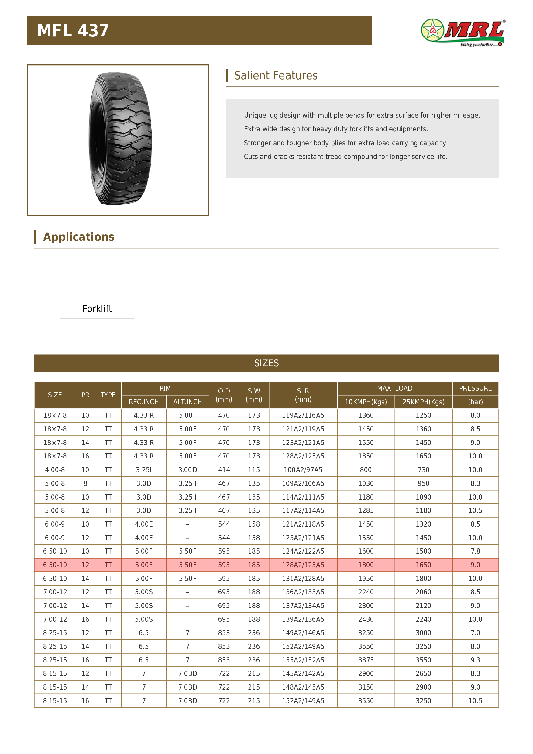 6.50-10 MRL MFL 437 12PR 125A5 TT