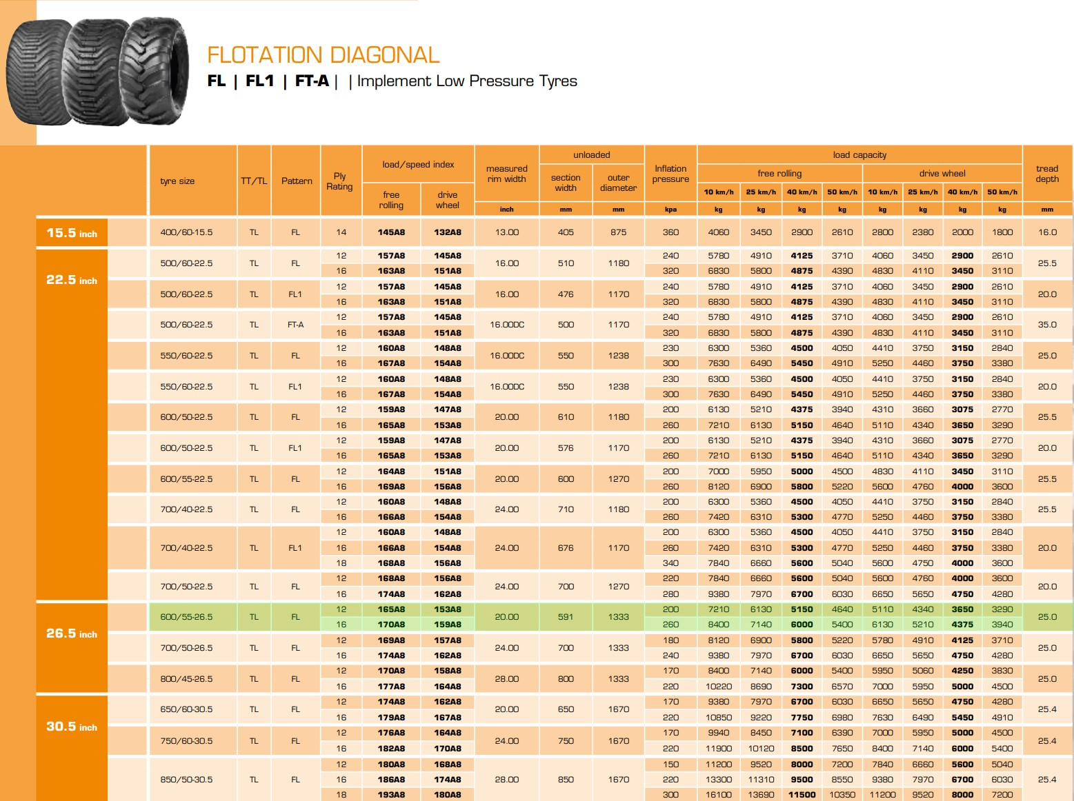 Model FI (Flotation-Implement) jest flotacyjną oponą zaprojektowaną do długiej i bezawaryjnej pracy we wszelkiego rodzaju przyczepach rolniczych, potrzebujących niezawodnego, sprawdzonego i solidnego ogumienia.