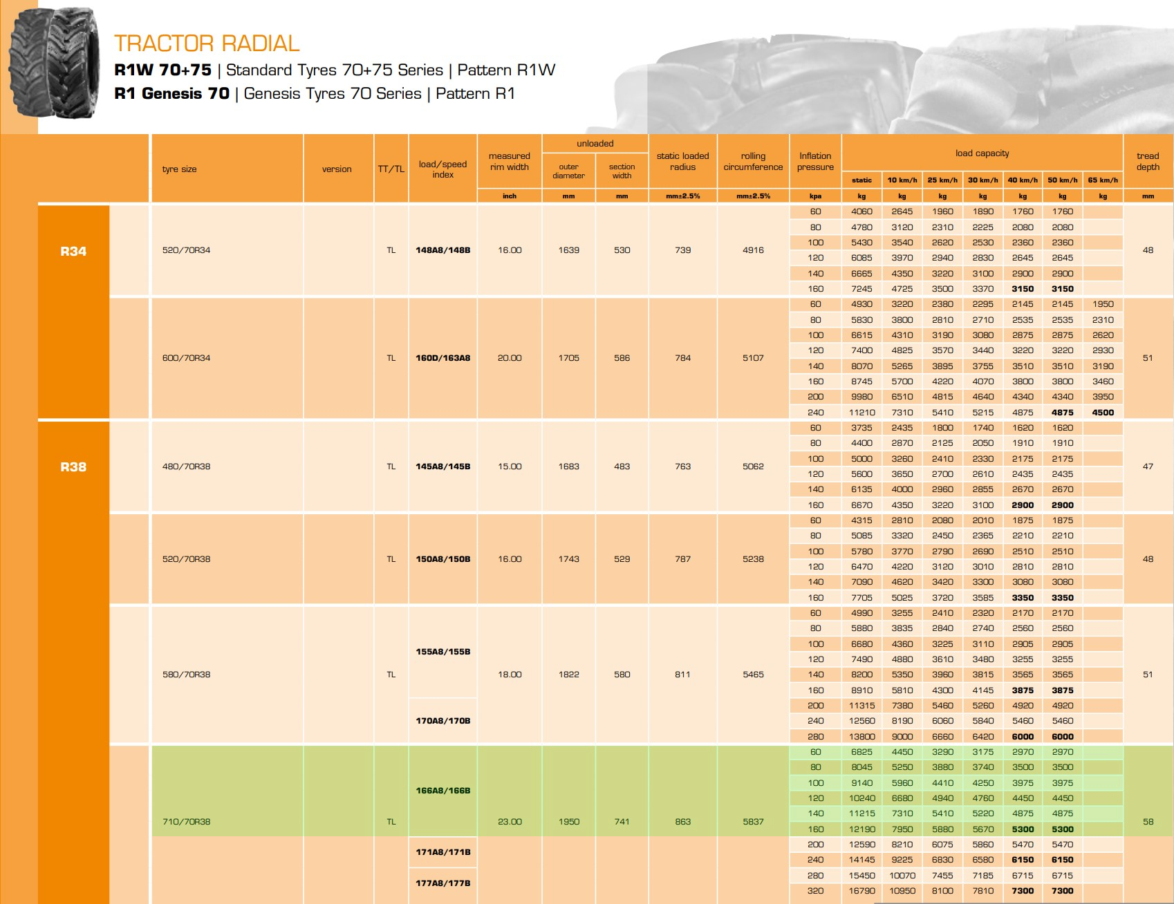 16.9-24 16.9-28 320/85R24 360/70R24 340/85R24 380/70R24 420/70R24 380/85R24 420/85R24 460/70R24 280/85R28 340/85R28 360/70R28 380/70R28 420/70R28 380/85R28 540/65R30 600/70R30 230/95R32 270/95R32 800/65R32 420/85R34 480/70R34 540/65R34 460/85R34 520/70R34 420/85R38 460/85R38 540/65R38 520/70R38 520/85R38 580/70R38 600/65R38 650/65R38 710/70R38