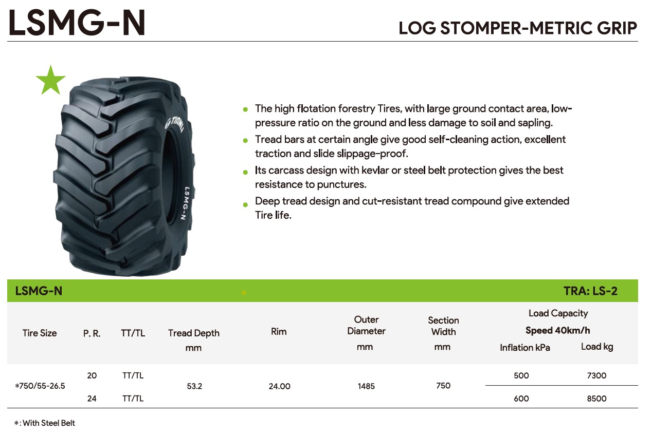 TIANLI LOG STOMPER- METRIC GRIP STEEL BELT jest oponą oferującą najnowsze i najnowocześniejsze rozwiązania w produkcji opon leśnych jakie oferuje światowy koncern Tianli.