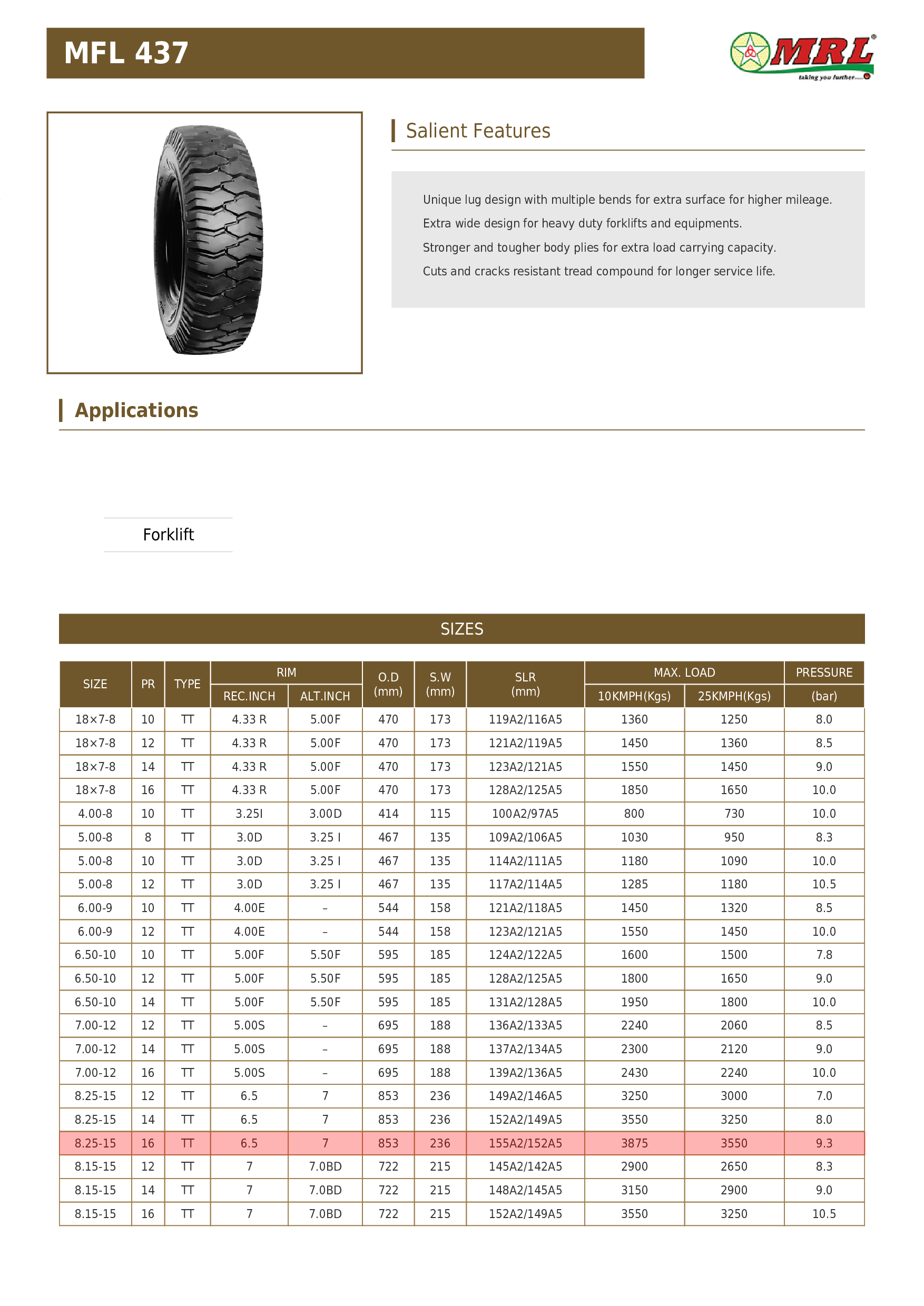Firma MRL posiada w swojej ofercie szeroki wybór opon w różnych rozmiarach, w jej fabrykach produkowane są: opony rolnicze, opony przemysłowe, wszystkie opony MRL objęte są gwarancją producenta i wytwarzane są z uwzględnieniem wszelkich norm dotyczących produkcji ogumienia.