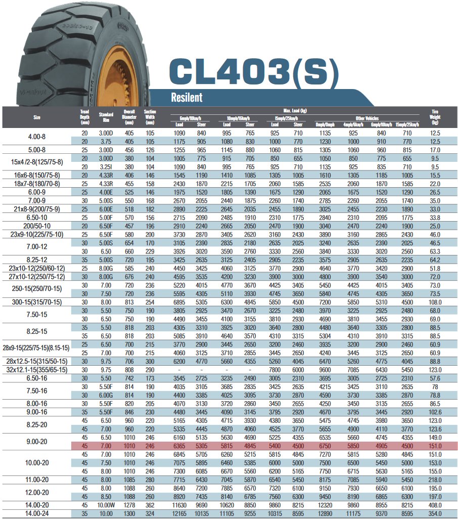 Westlake CL403S Performance Series STD w rozmiarze 9.00-20 jest pełną, solidną i zaprojektowaną z myślą o najbardziej wymagających warunkach oponą wózkową. Wysoki bieżnik, bardzo wolno ścierająca się mieszanka gumy oraz 5-letnia gwarancja czynią z modelu CL403S Performance Series jeden z najlepszych modeli wśród opon wózkowych – definicja niezawodności charakteryzująca się bardzo dobrym stosunkiem jakości do ceny. Idealne dopasowanie do maszyn takich producentów jak Still, Linde, Nissan czy Toyota, które pracując w ciężkich warunkach wymagają opon pełnych.