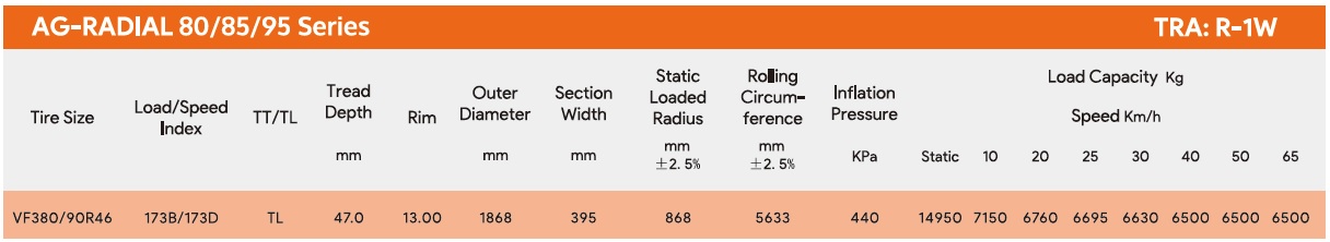 16.9-24 16.9-28 320/85R24 360/70R24 340/85R24 380/70R24 420/70R24 380/85R24 420/85R24 460/70R24 280/85R28 340/85R28 360/70R28 380/70R28 420/70R28 380/85R28 540/65R30 600/70R30 230/95R32 270/95R32 800/65R32 420/85R34 480/70R34 540/65R34 460/85R34 520/70R34 420/85R38 460/85R38 540/65R38 520/70R38 520/85R38 580/70R38 600/65R38 650/65R38 710/70R38